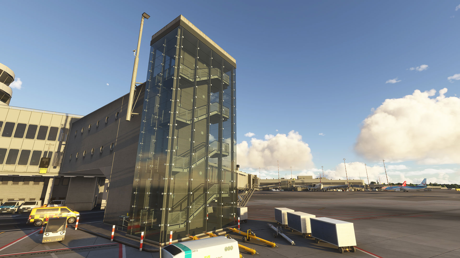 - Eigener Vorfeldverkehr und animierte Flughafenfahrzeuge