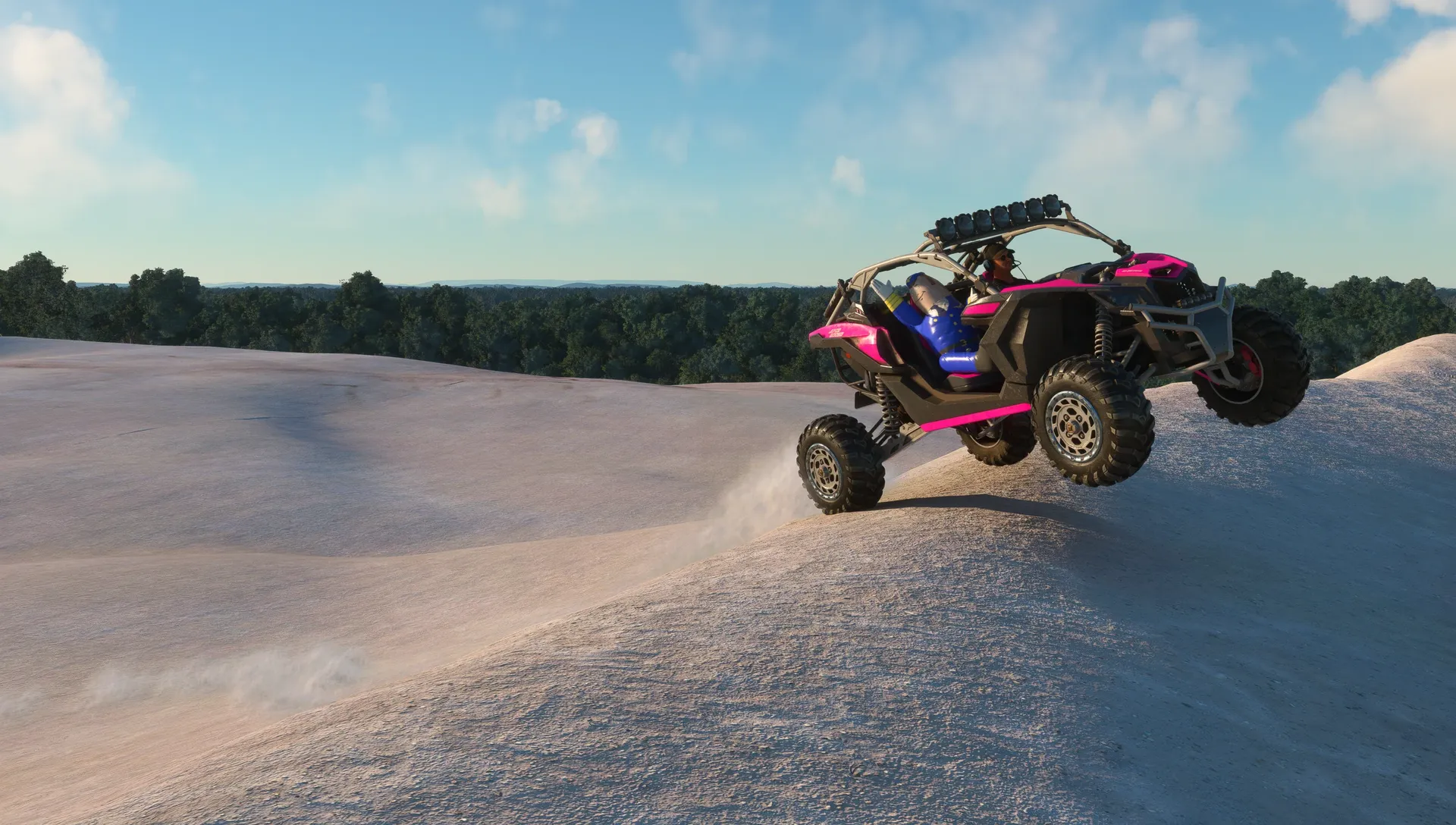 Außerdem kommt das Add-On im Paket zusammen mit der passenden Szenerie, welche sich 42 Goose Bowl nennt. Hier könnt ihr euer neues Fahrzeug nach Belieben auf Sanddünen testen und seid sogar mit vielen Rampen und beispielsweise einem Strand versorgt, auf dem man mal so richtig Vollgas geben kann. Bei der Map liegt das Augenmerk auf den vielen Details am Boden, sodass die Szenerie auch bei der Erkundung mit dem UTV einen lebendigen Eindruck macht.