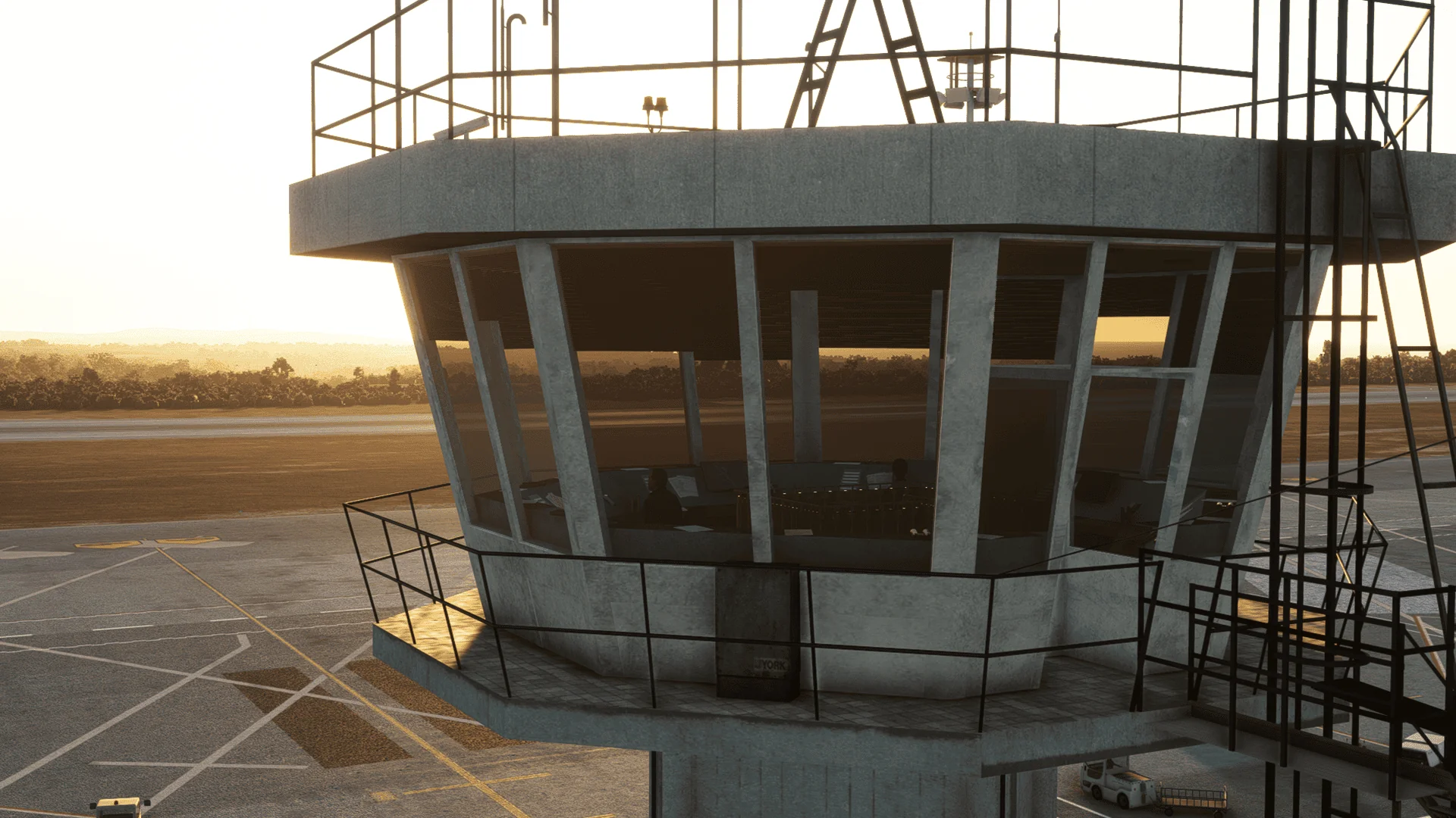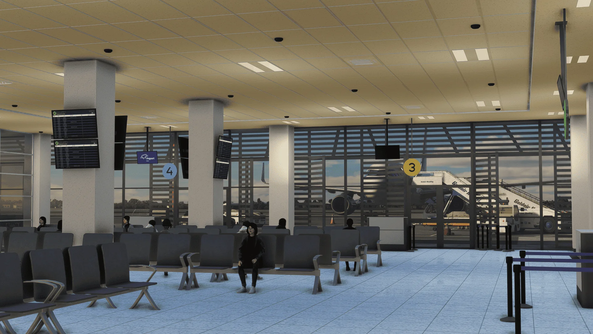 - Hoch detaillierte Innenräume der Terminals und vom Tower.